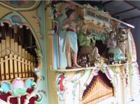 The day was rounded off by listening to an old "draaiorrel" from 1978. The mechanism fascinated Ben and I had to drag him away eventually. The organ has 75 keys, 11 stops, 406 pipes and many percussions. They feed it papers of books as thick as telephone directories and out comes the music. They even played a few modern pop numbers. We ate "poffertjies" while listening to the organ, these are small dough-balls covered in icing/caster sugar. They make it on a special rack, over boiling oil. The sugar messes all over your sweater, so you can see who all had these balls.
